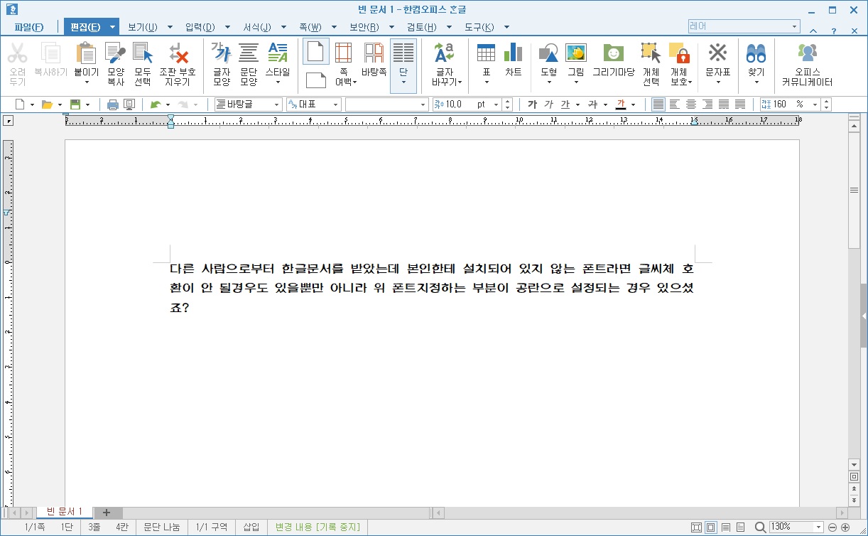 앞서말씀드린 경우가 위 같은 상황입니다. 파일을 받아 열었으나, 저한테 없는 폰트라 글자 크기 왼쪽에 나와야할 폰트 목록이 비워져 있습니다. 또는 깨지는 경우죠. 지금부터 폰트확인하는 방법을 알려드리도록 하겠습니다.